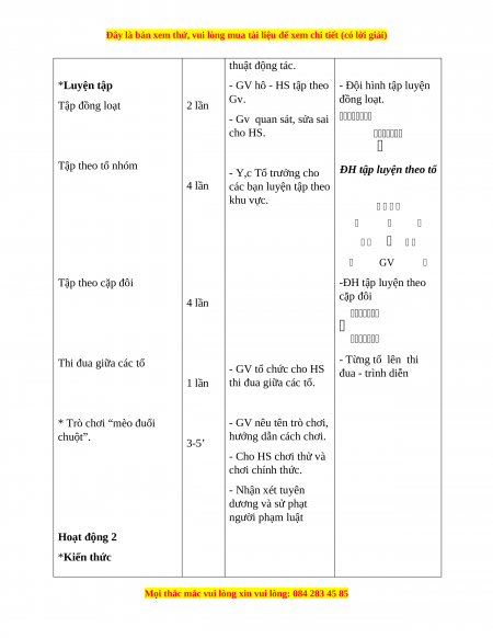 - Phương pháp dạy học chính: Làm mẫu, sử dụng lời nói, tập luyện, trò chơi và thi