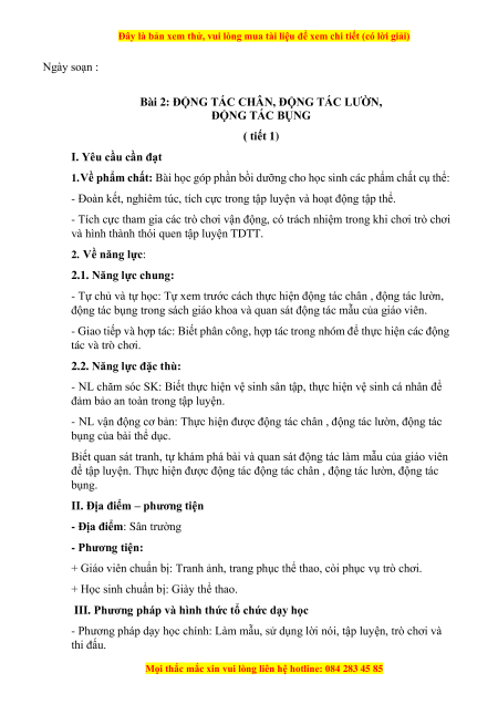 Bài 2: ĐỘNG TÁC CHÂN, ĐỘNG TÁC LƯỜN, ĐỘNG TÁC BỤNG ( tiết 1)