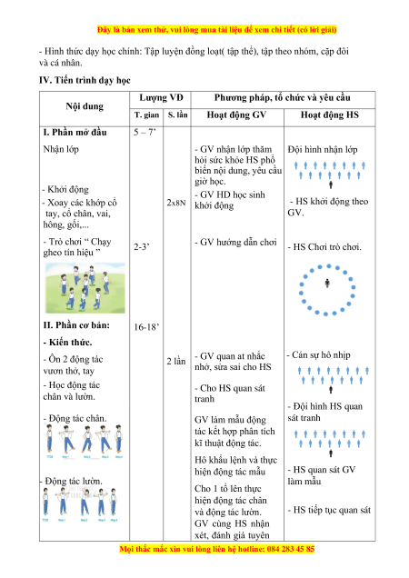 - Phương pháp dạy học chính: Làm mẫu, sử dụng lời nói, tập luyện, trò chơi và thi đấu.
