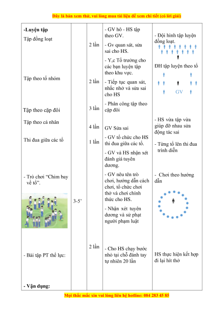 - Hình thức dạy học chính: Tập luyện đồng loạt( tập thể), tập theo nhóm, cặp đôi