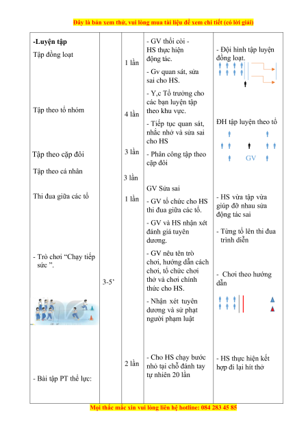 - Phương pháp dạy học chính: Làm mẫu, sử dụng lời nói, tập luyện, trò chơi và