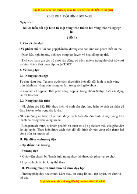Bài 3: Biến đổi đội hình từ một vòng tròn thành hai vòng tròn và ngược lại ( tiết 1)