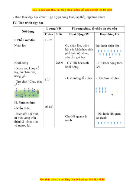- Hình thức dạy học chính: Tập luyện đồng loạt( tập thể), tập theo nhóm