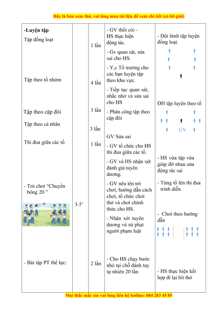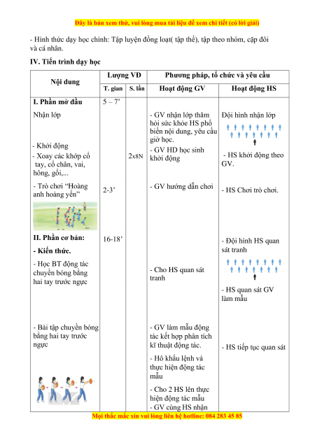 - Phương pháp dạy học chính: Làm mẫu, sử dụng lời nói, tập luyện, trò chơi và