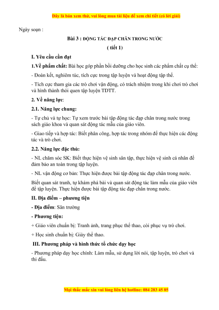 Bài 3 : ĐỘNG TÁC ĐẠP CHÂN TRONG NƯỚC ( tiết 1)