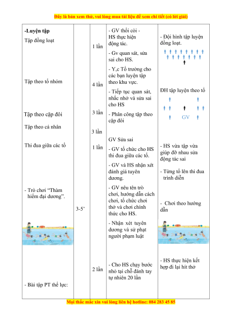 - Phương pháp dạy học chính: Làm mẫu, sử dụng lời nói, tập luyện, trò chơi và thi đấu.