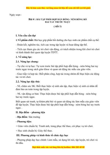 - Phương pháp dạy học chính: Làm mẫu, sử dụng lời nói, tập luyện, trò chơi và thi đấu.