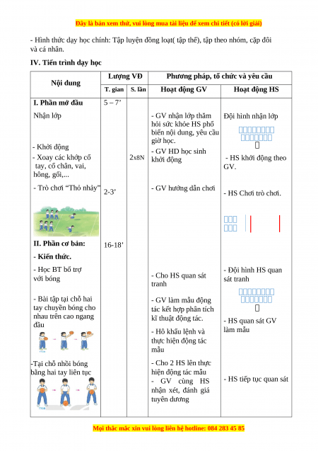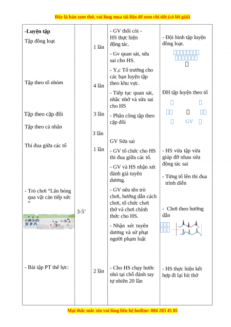 - Phương pháp dạy học chính: Làm mẫu, sử dụng lời nói, tập luyện, trò chơi và thi đấu.