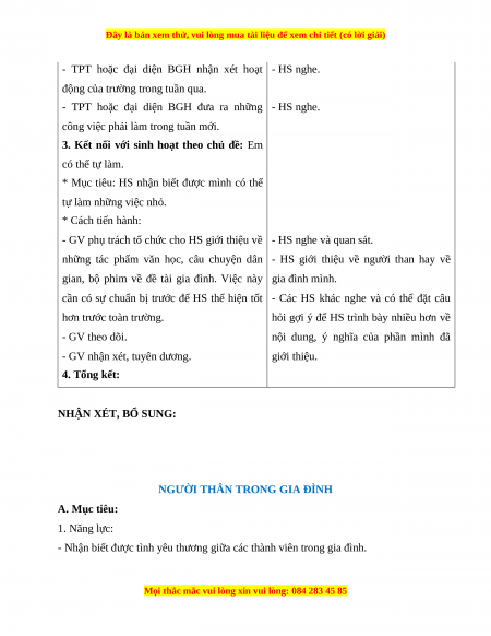 NGƯỜI THÂN TRONG GIA ĐÌNH A. Mục tiêu: 1. Năng lực: