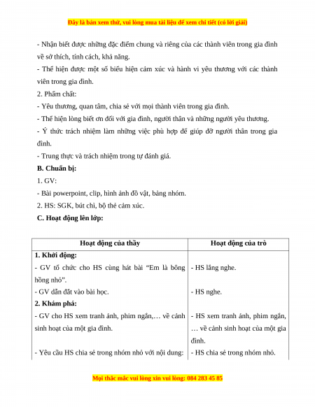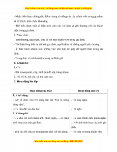 - Thể hiện được một số biểu hiện cảm xúc và hành vi yêu thương với các thành viên trong gia đình. 2. Phẩm chất: