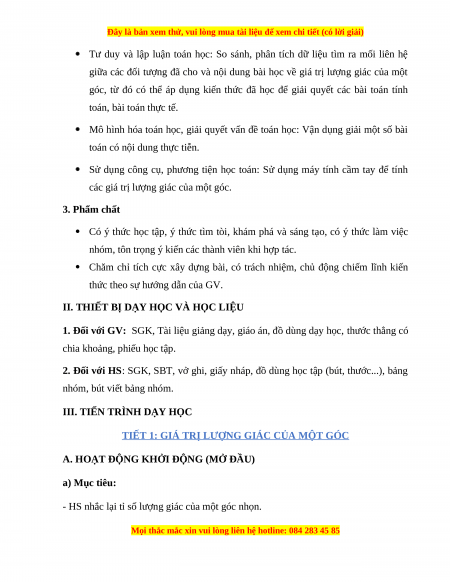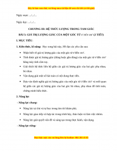 các giá trị lượng giác của một góc. 3. Phẩm chất