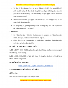 góc, từ đó có thể áp dụng kiến thức đã học để giải quyết các bài toán tính toán, bài toán thực tế.