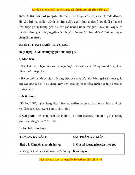 TIẾT 1: GIÁ TRỊ LƯỢNG GIÁC CỦA MỘT GÓC