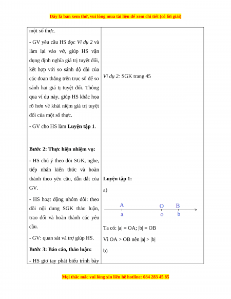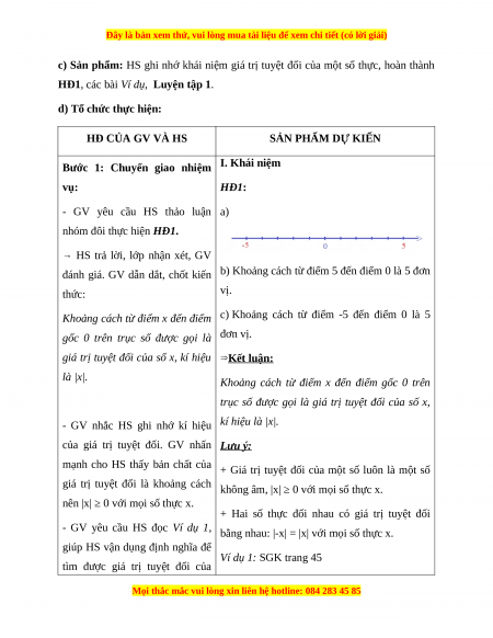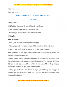 Giáo án Giá trị tuyệt đối của một số thực Toán 7 Cánh diều