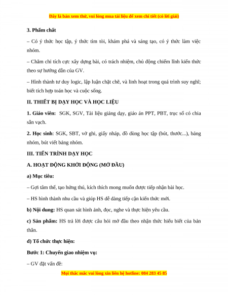 2. Học sinh: SGK, SBT, vở ghi, giấy nháp, đồ dùng học tập (bút, thước...), bảng