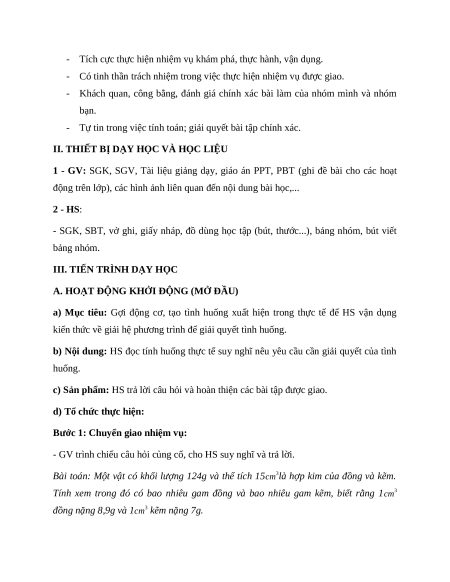 Bài toán: Một vật có khối lượng 124g và thể tích 15cm3là hợp kim của đồng và kẽm.