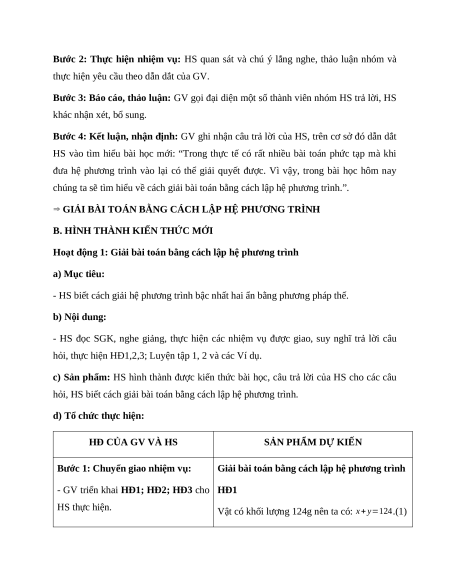 Hoạt động 1: Giải bài toán bằng cách lập hệ phương trình a) Mục tiêu: