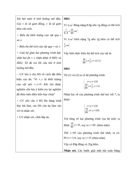 kiến thức về giải hệ phương trình để giải quyết tình huống.