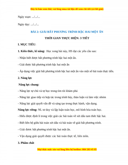 - Áp dụng việc giải bất phương trình bậc hai một ẩn vào một số bài toán thực tiễn. 2. Năng lực Năng lực chung: