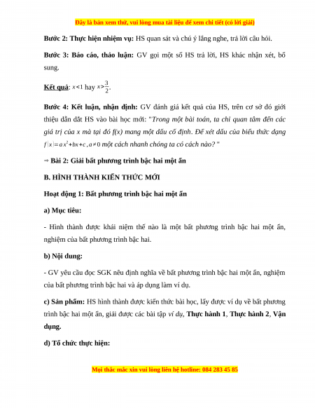 BÀI 2: GIẢI BẤT PHƯƠNG TRÌNH BẬC HAI MỘT ẨN