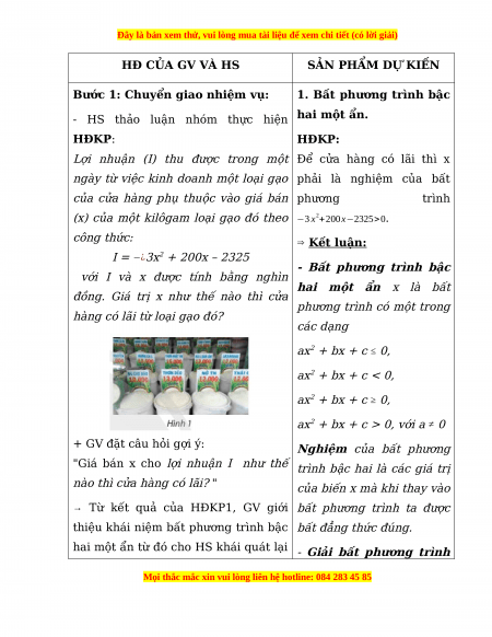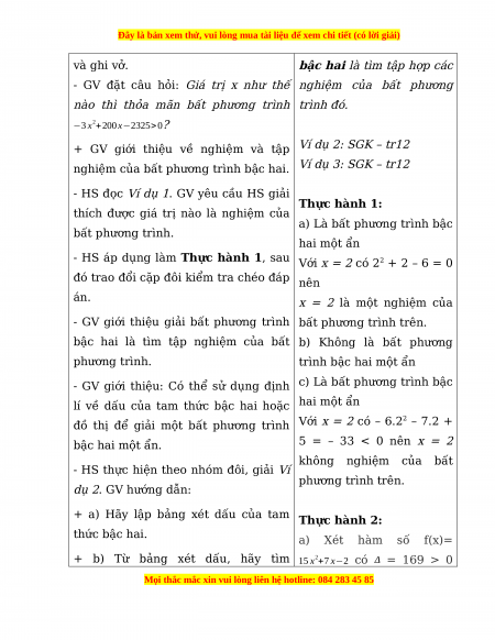 - Dẫn nhập vào bài toán bất phương trình bậc hai từ kiến thức đã học về dấu của