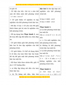 → Từ kết quả của HĐKP1, GV giới bất phương trình ta được