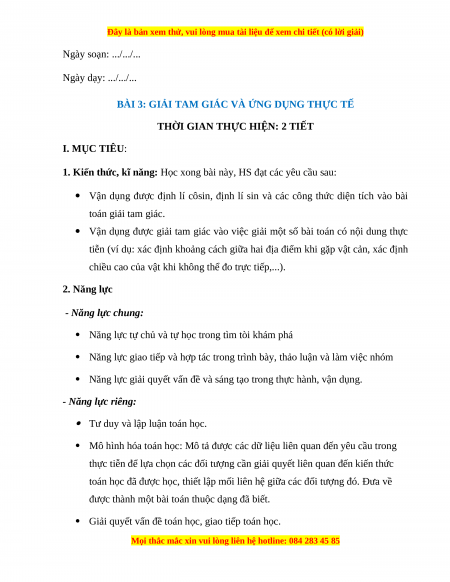 BÀI 3: GIẢI TAM GIÁC VÀ ỨNG DỤNG THỰC TẾ