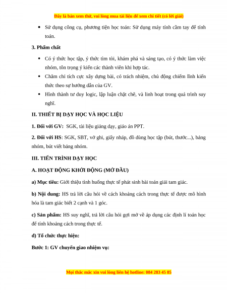- HS làm quen với bài toán thực tế điển hình của giải tam giác như: xác định