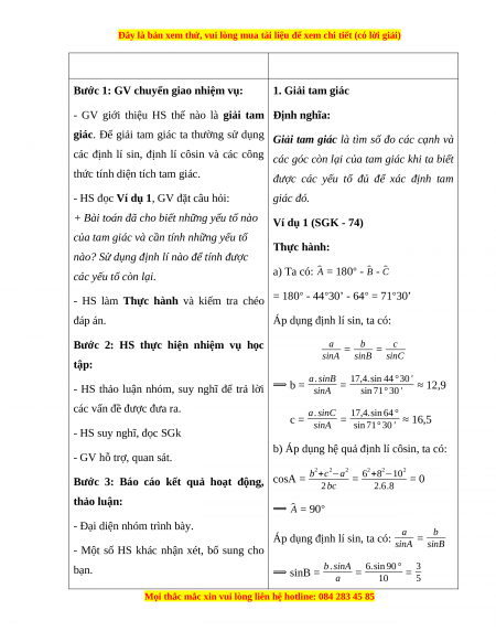 Bước 1: GV chuyển giao nhiệm vụ: 1. Giải tam giác