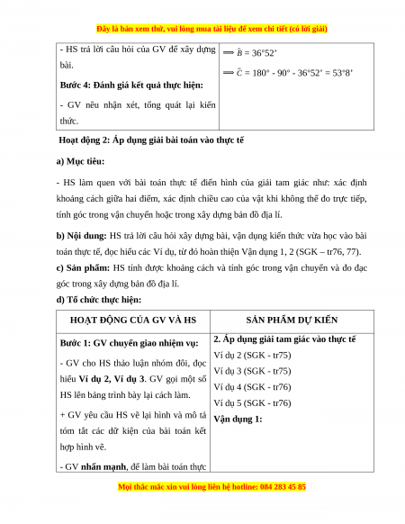 toán thực tế, đọc hiểu các Ví dụ, từ đó hoàn thiện Vận dụng 1, 2 (SGK – tr76, 77).