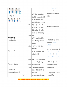 - Phương pháp dạy học chính: Làm mẫu, sử dụng lời nói, tập luyện, trò chơi và thi