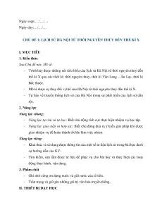 CHỦ ĐỀ 1: LỊCH SỬ HÀ NỘI TỪ THỜI NGUYÊN THỦY ĐẾN THẾ KỈ X I. MỤC TIÊU 1. Kiến thức