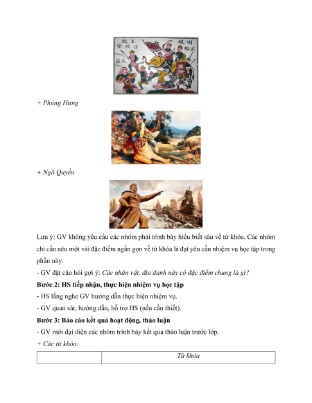 + Mỗi nhóm tìm hiểu về một từ khóa trong phần mở đầu của SGK: Cổ Loa, Mê Linh,