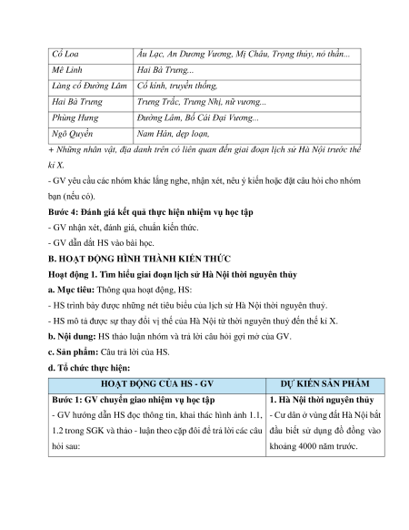 - Trình bày được những nét tiêu biểu của lịch sử Hà Nội từ thời nguyên thuỷ đến