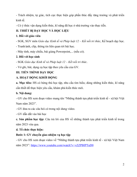 tăng trưởng, phát triển kinh tế. 3. Phẩm chất: 1