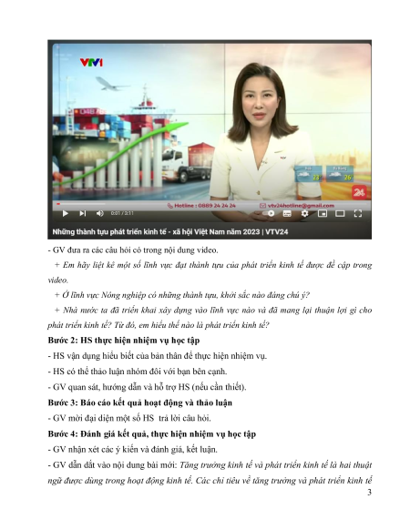 bài học và thực tiễn cuộc sống liên quan đến tăng trưởng và phát triển kinh tế. Năng lực đặc thù: