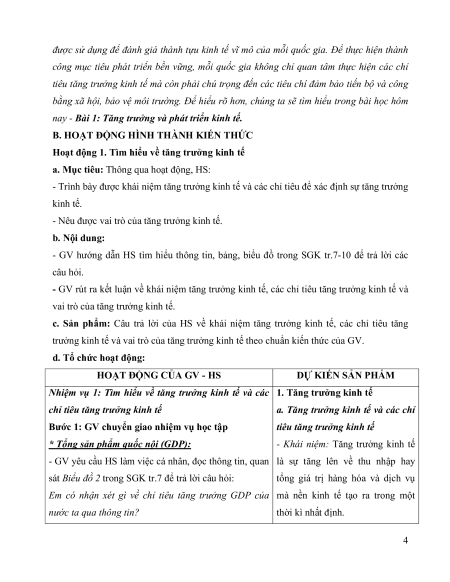 - Nêu được vai trò của tăng trưởng kinh tế. b. Nội dung: