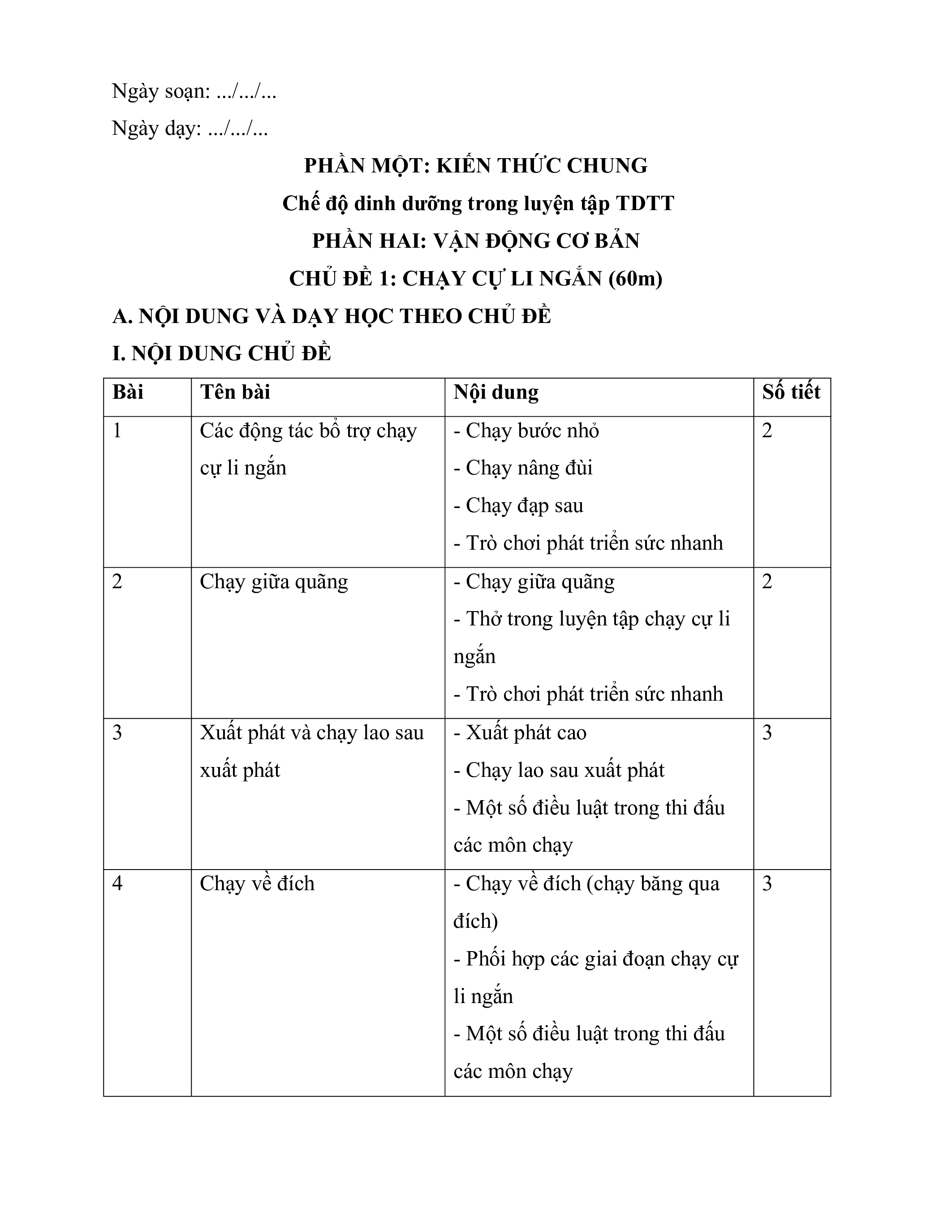 CHỦ ĐỀ 1: CHẠY CỰ LI NGẮN (60m)