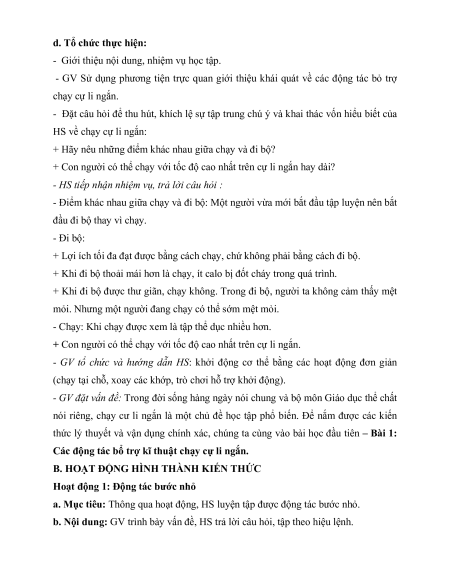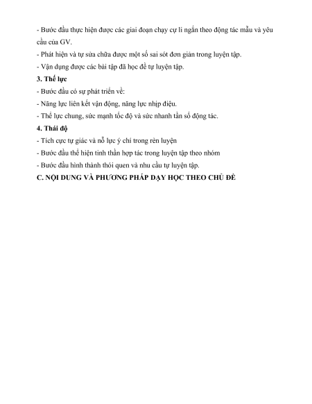 - Rèn luyện thẻ lực chung và một số tố chất thẻ lực đặc trưng của chạy cự li ngắn.