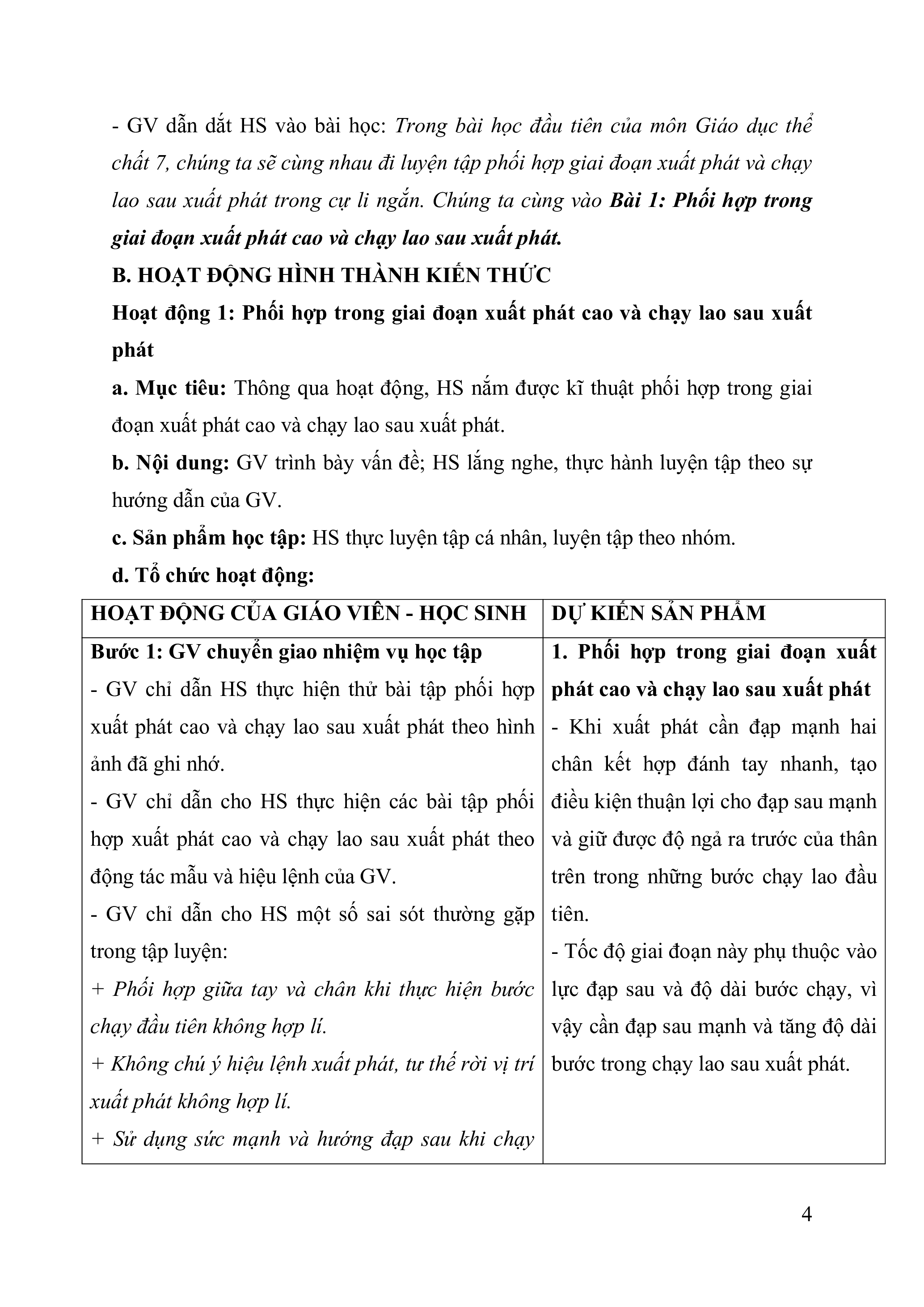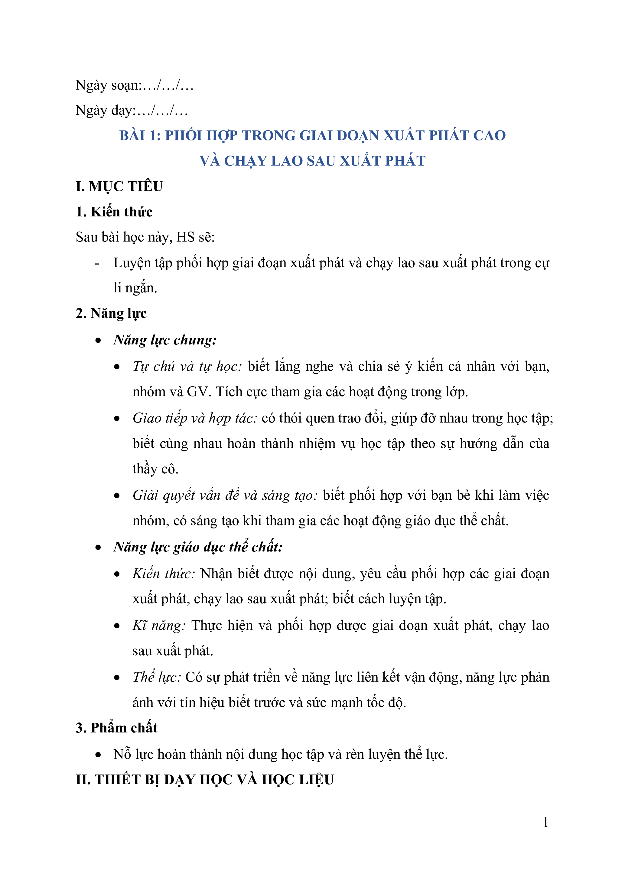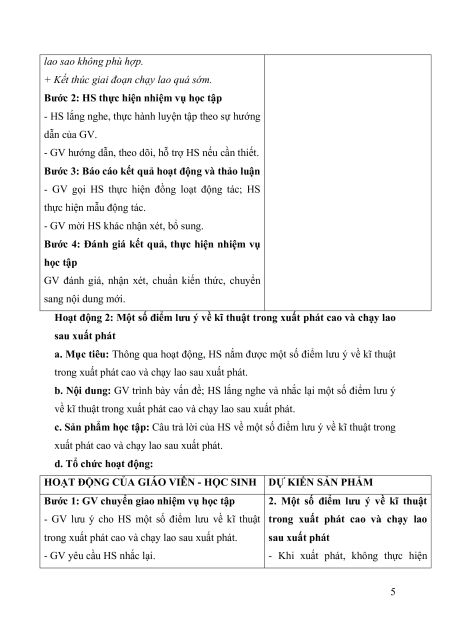- Luyện tập phối hợp giai đoạn xuất phát và chạy lao sau xuất phát trong cự li ngắn. 2. Năng lực