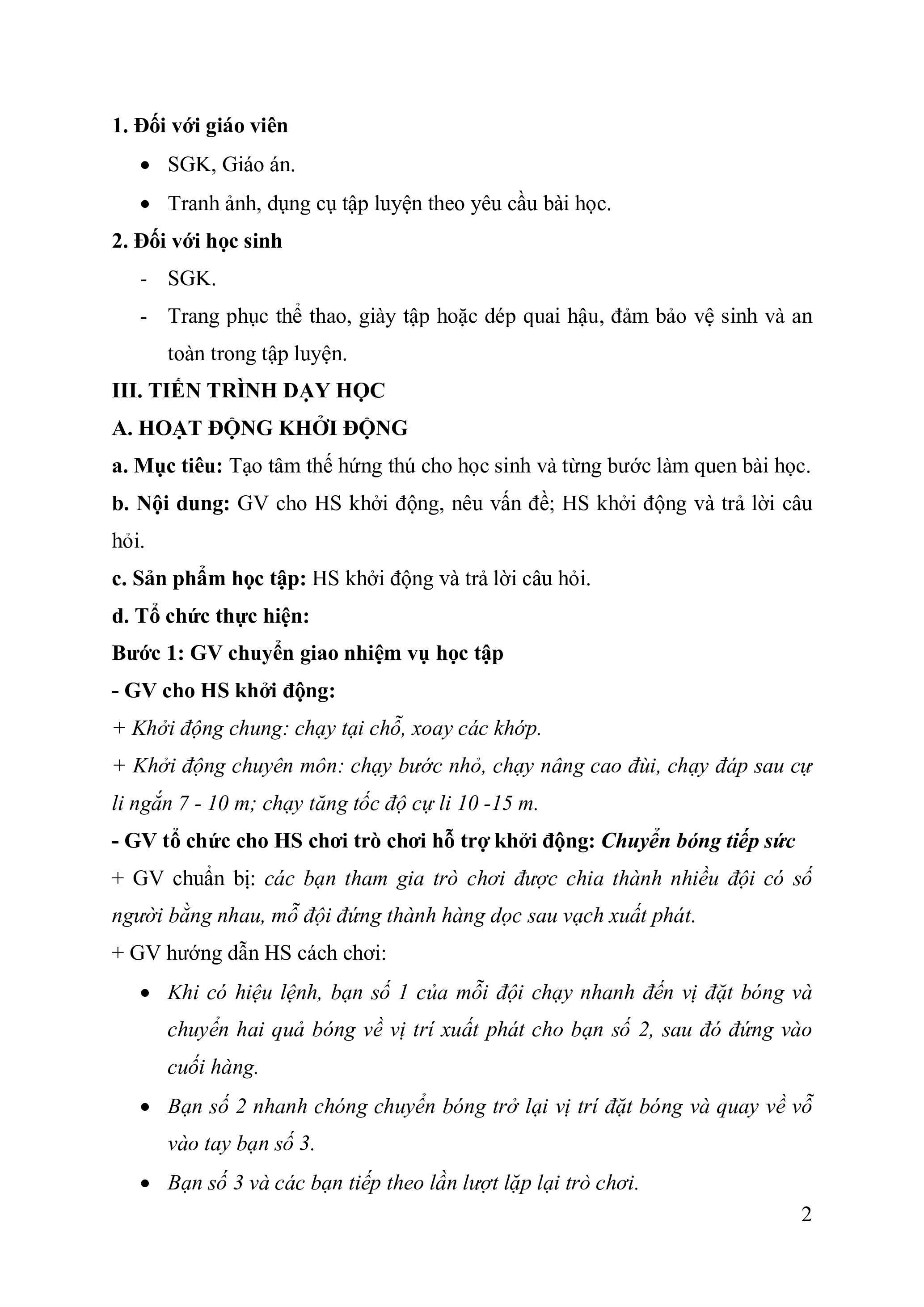 - GV tổ chức cho HS chơi trò chơi hỗ trợ khởi động: Chuyển bóng tiếp sức