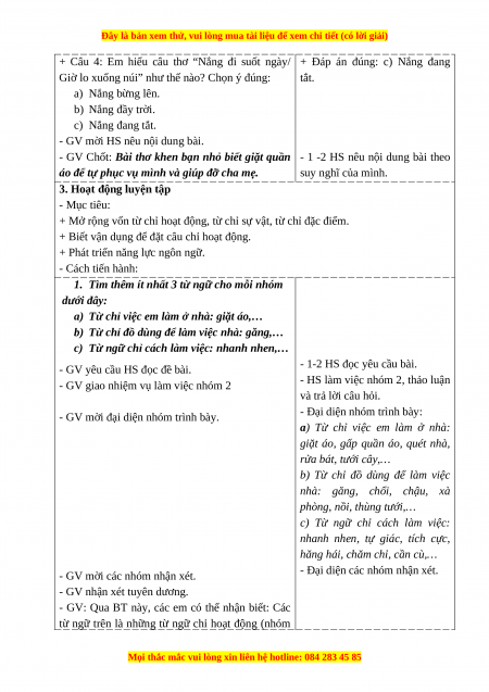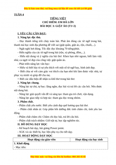 BÀI ĐỌC 3: GIẶT ÁO (T1+2) I. YÊU CẦU CẦN ĐẠT: 1. Năng lực đặc thù.