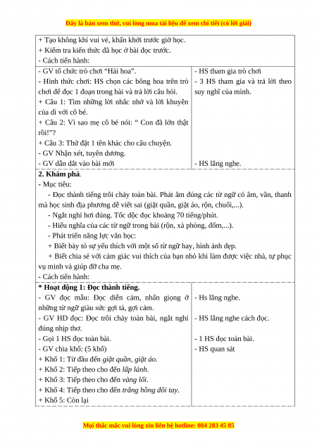 * Hoạt động 1: Đọc thành tiếng.