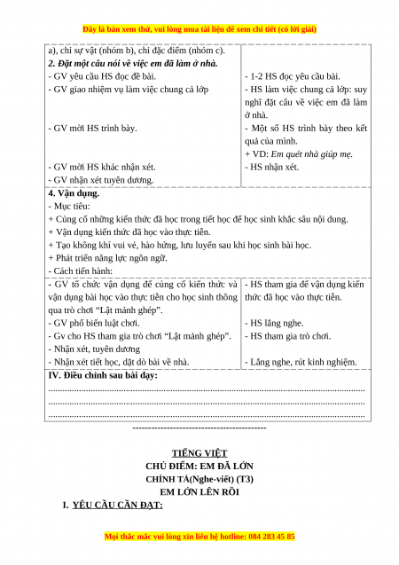 IV. Điều chỉnh sau bài dạy: