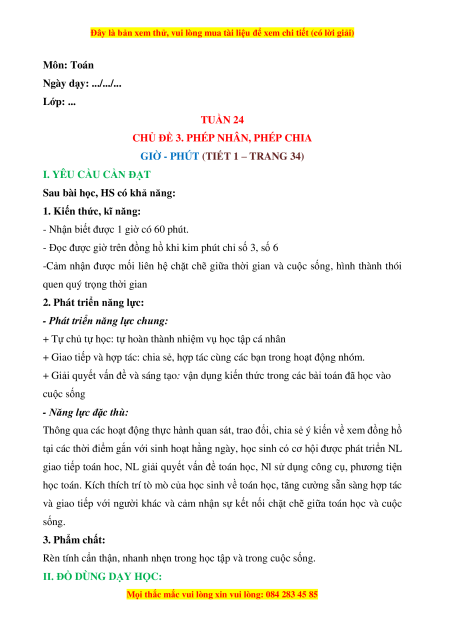 GIỜ - PHÚT (TIẾT 1 – TRANG 34)