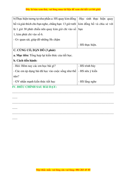 a) Gv yêu cầu học sinh quay kim trên mặt đồng hồ