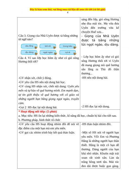 a. Mục tiêu: Hiểu nội dung bài đọc: Uyên yêu mến và tự hào về quê hương mình.