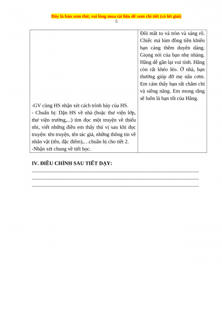IV. ĐIỀU CHỈNH SAU TIẾT DẠY: