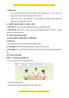 ứ tìm tòi, khám phá và sáng tạo, có ý th c ứ làm vi c ệ nhóm, tôn tr n ọ g ý ki n ế các thành viên khi h p ợ tác. - Chăm chỉ tích c c ự xây d n ự g bài, có trách nhi m, ệ chủ đ n ộ g chi m ế lĩnh ki n ế th c ứ theo s ự h n ướ g d n ẫ c a ủ GV. II. THI T Ế B Ị D Y Ạ H C Ọ VÀ H C Ọ LI U Ệ 1. Đ i ố v i ớ GV: SGK, Tài li u ệ gi n ả g d y ạ , giáo án, đ ồ dùng d y ạ h c. ọ 2. Đ i ố v i