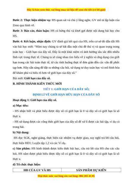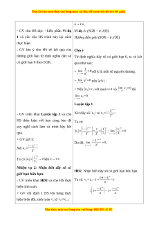 - HS sử dụng được các công thức giới hạn của dãy số để xử lí được các bài tập, ví dụ có trong bài. b) Nội dung: